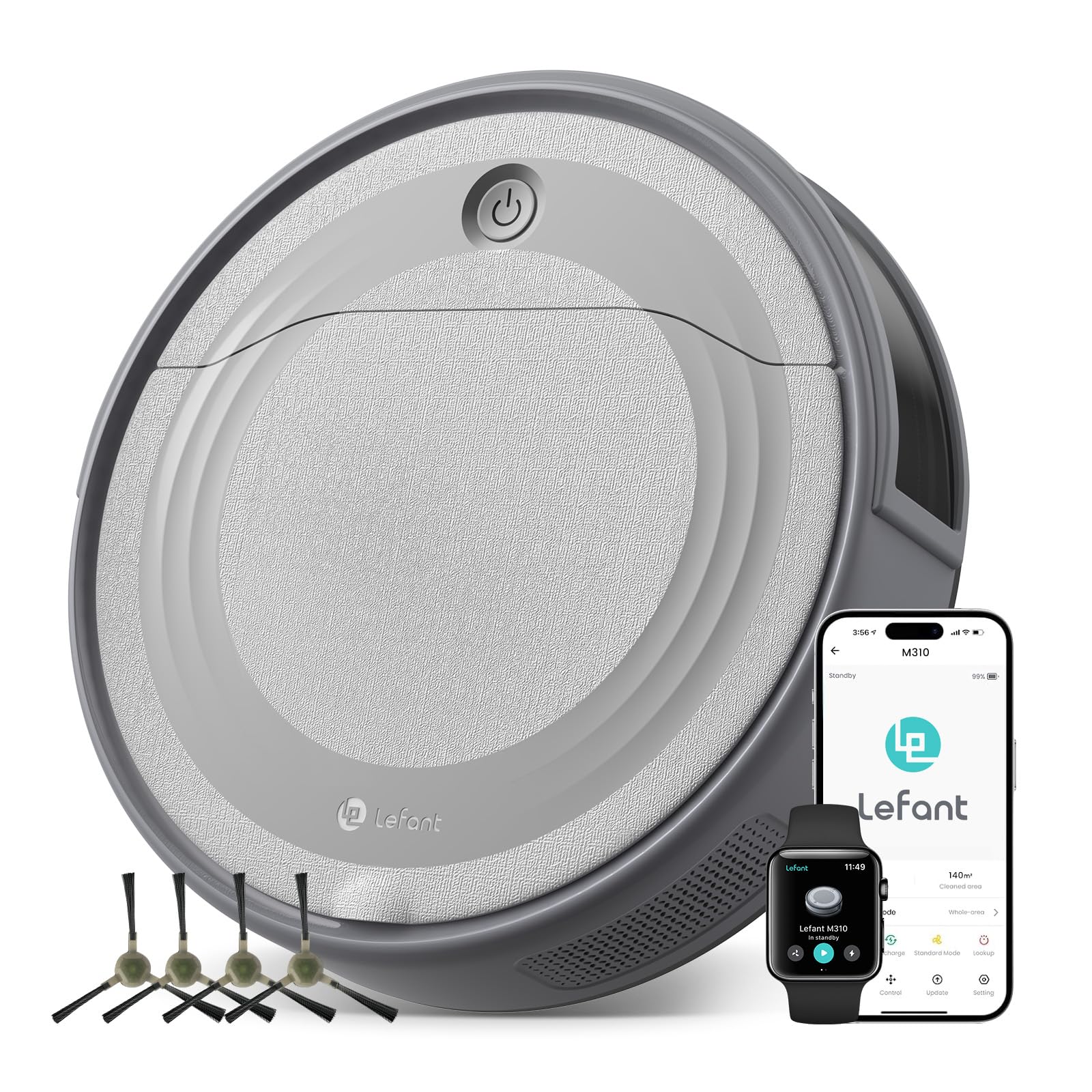 Lefant M310 Robot Vacuum Cleaner, 4500Pa Powerful Suction, Slim 7.9cm Height, 28cm Compact Size, Self-Charging, 2.4G Wi-Fi/App/Alexa Control, Ideal for Pet Hair, Hard Floors and Low-Pile Carpets