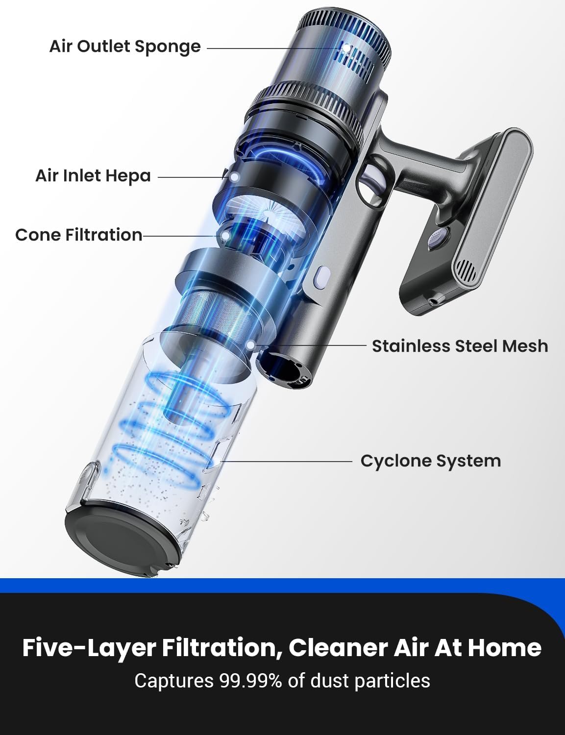 - 【45Kpa Strong Suction & Ultra-Quiet】The vacuum cleaner cordless powerful delivers 45Kpa suction, effortlessly picking up dust, dirt, and pet hair from carpets and hard floors. Its ultra-quiet operation ensures a peaceful cleaning experience, perfect for home use