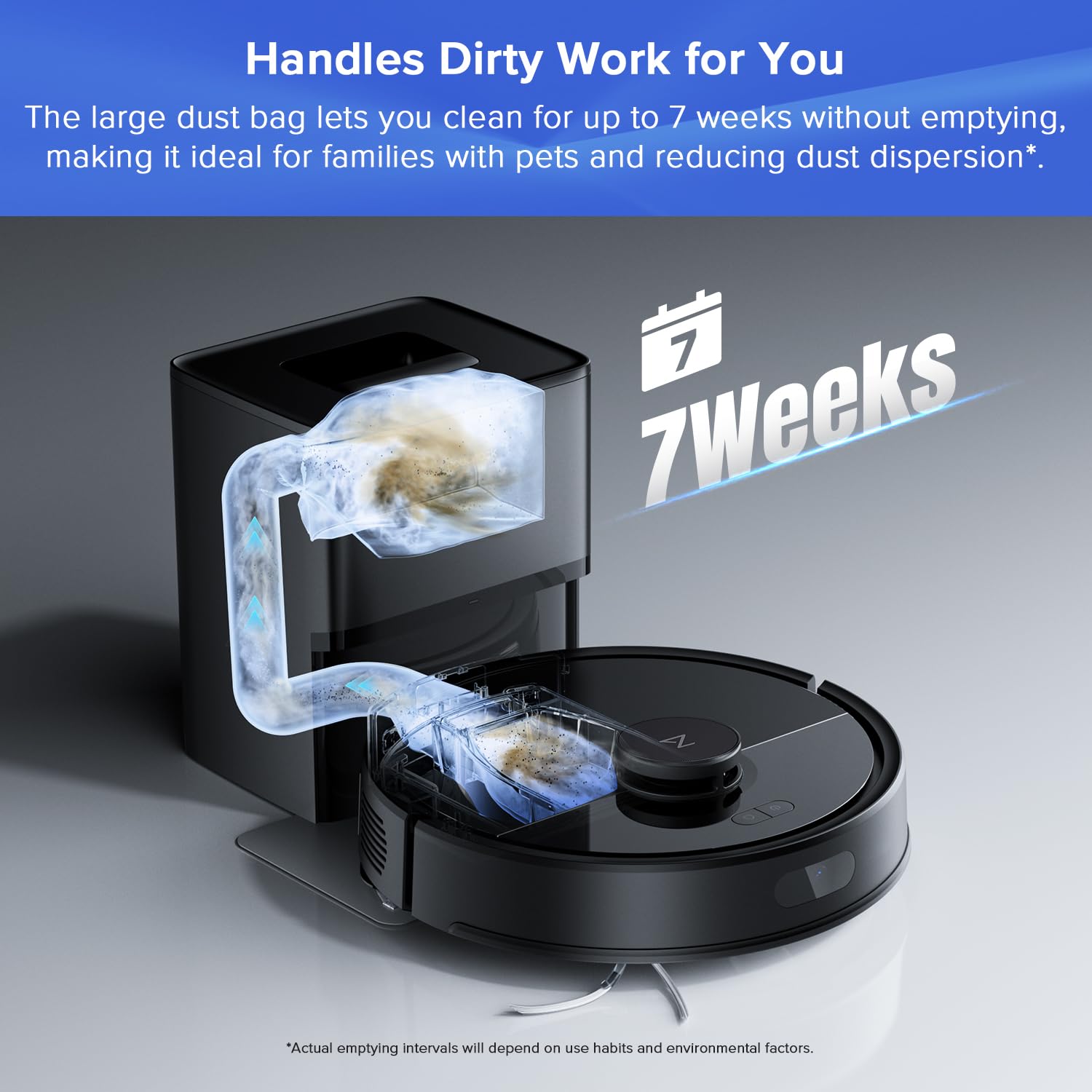 - 7 Weeks of Hands-Free - Enjoy worry-free cleaning with the self-emptying dock and a large 2.7L dust bag—no need to empty for up to 7 weeks. Ideal for busy families and pet owners. Plus, smart charging during off-peak hours helps you save energy and always keeps your robot ready to clean